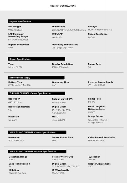 TNC635R - ThermNight Thermal & Night Vision Multispectral Scope with Laser Rangefinder and Ballistic Calculator